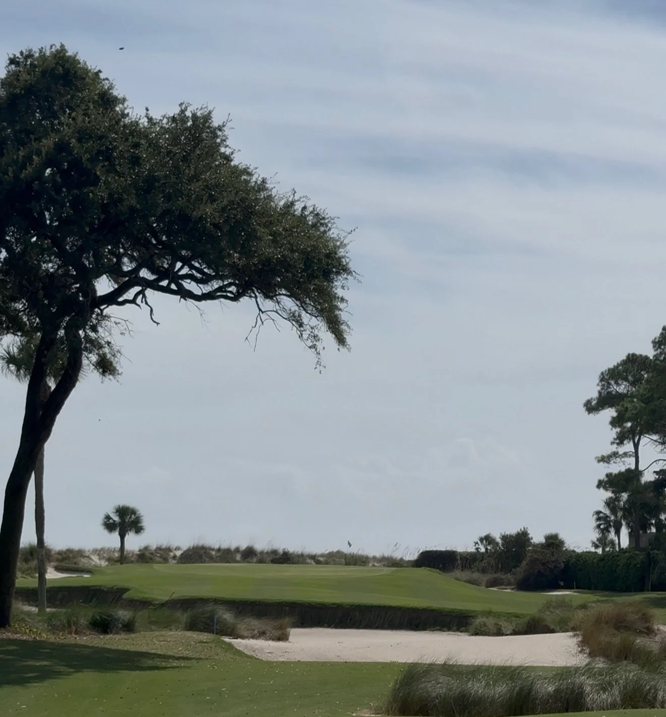 Old South’s Hole 5, Par 5 with a Palmetto in the center of the fairway
